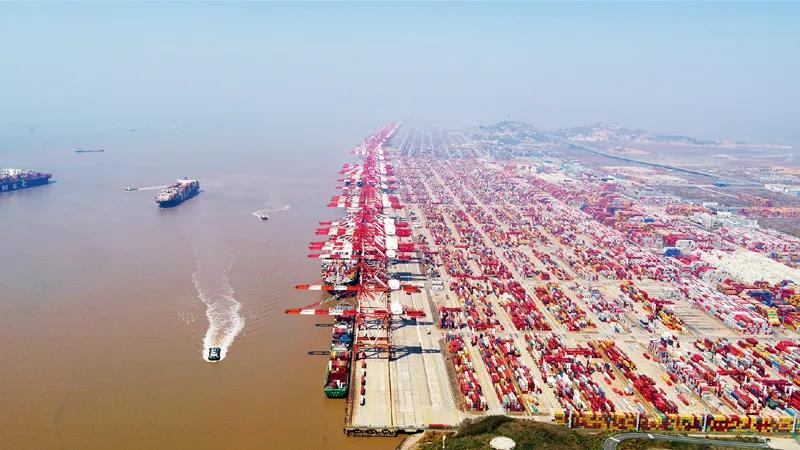 在“綠水青山就是金山銀山”理念指引下,長江經(jīng)濟帶各地進一步加強環(huán)境保護、完善基礎(chǔ)設施、推進協(xié)調(diào)發(fā)展、擴大對外開放,共同奏響高質(zhì)量發(fā)展新樂章。圖為2020年3月18日上海洋山港集裝箱碼頭。新華社記者 丁汀/攝