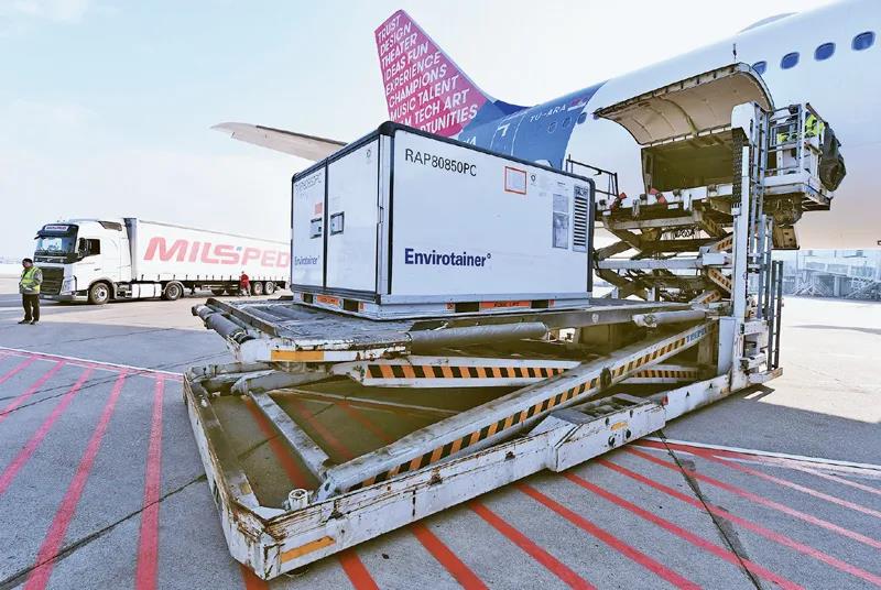 中國新冠疫苗上市以來,世界多國積極采購,給中國疫苗投下“信任票”。圖為2021年1月16日,在塞爾維亞首都貝爾格萊德,機場工作人員卸載首批中國新冠疫苗。 新華社發(fā) 普雷德拉格.米洛薩夫列維奇/攝