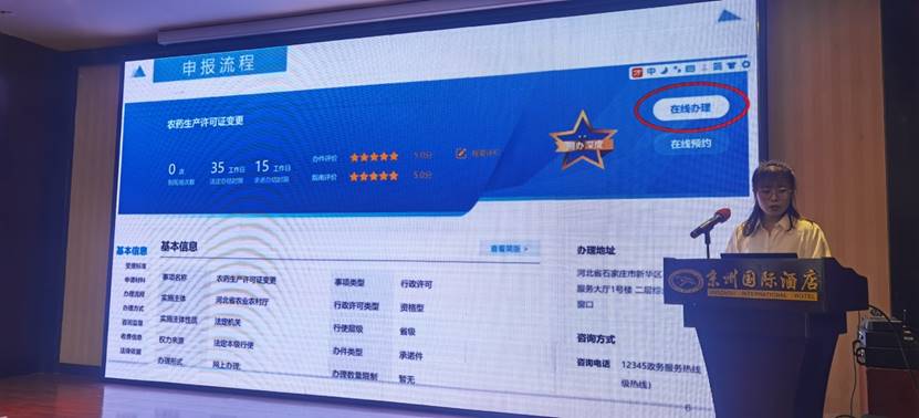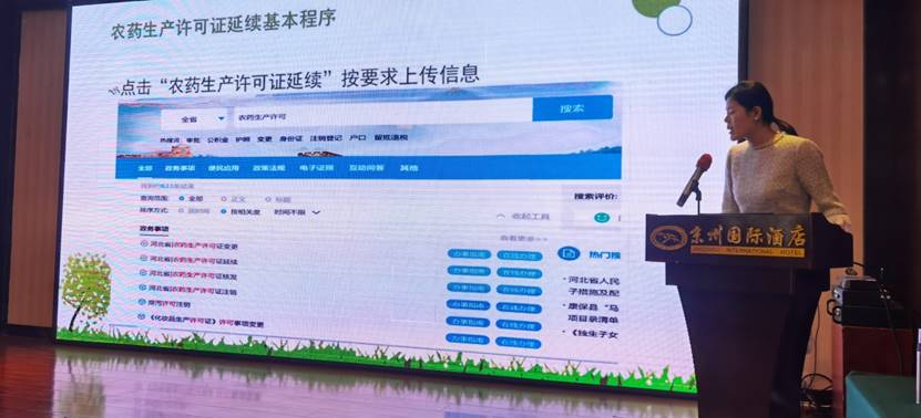 河北省農藥檢定監測總站高夢琪科長為大家詳細講解了申報流程、農藥生產經營許可申報常見問題及限制使用農藥經營許可延續有關要求。