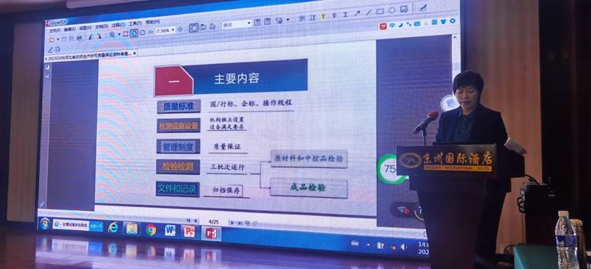 河北省農藥檢定監測總站牛海林科長為參訓人員詳細介紹了申報農藥生產許可證延續的基本程序,并介紹了延續資料的要求及注意事項。
