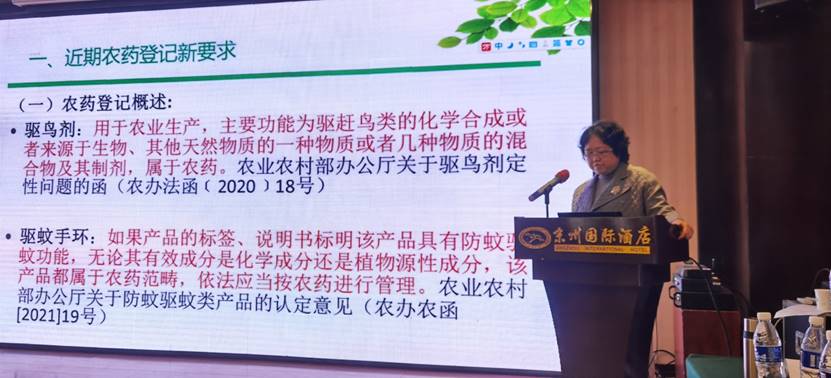 河北省農藥檢定監測總站崔慧霄科長對近期農藥登記新要求、登記中的問題及評審要點、近期農藥登記管理動態進行了詳細講解,并分別對2022年不同類別的產品登記情況進行了匯總、分析,對農藥產品登記發展趨勢進行了探討。