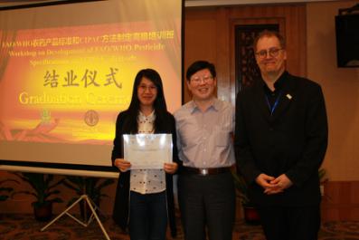會議為時(shí)3天,現(xiàn)場氣氛活躍,學(xué)員就標(biāo)準(zhǔn)和方法制定的相關(guān)問題向遠(yuǎn)道而來的授課專家咨詢。培訓(xùn)結(jié)束后,參會學(xué)員獲得由中國農(nóng)藥工業(yè)協(xié)會、CIPAC、JMPS聯(lián)合頒發(fā)的結(jié)業(yè)證書。本次會議由中國農(nóng)藥工業(yè)協(xié)會夏烽副秘書長主持,農(nóng)業(yè)部農(nóng)藥檢定所宋俊華高級農(nóng)藝師和杭州宇龍化工有限公司吳珊總經(jīng)理、黃潤紅主任提供現(xiàn)場翻譯。