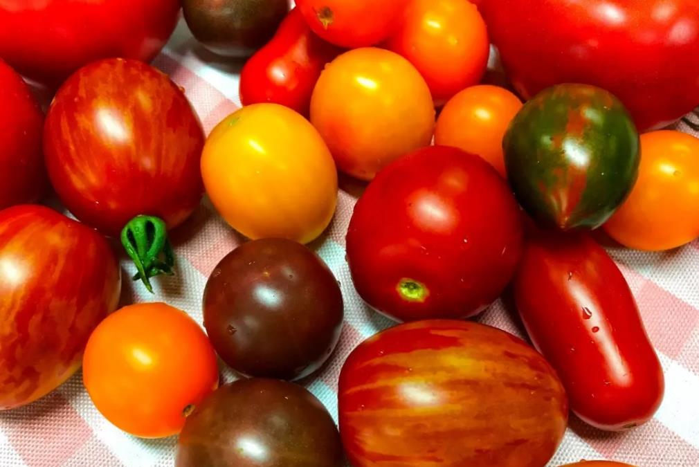除了平常使用的大塊頭番茄之外,還有被作為水果的各色櫻桃番茄,像葡萄一樣成串出售的串茄,甚至還有紫色、黃色等等顏色各異的品種。