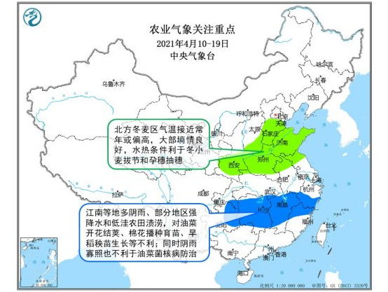 “預計未來10天(4月10日-4月19日),北方大部熱量條件較好,利于春小麥、棉花、春玉米等春
