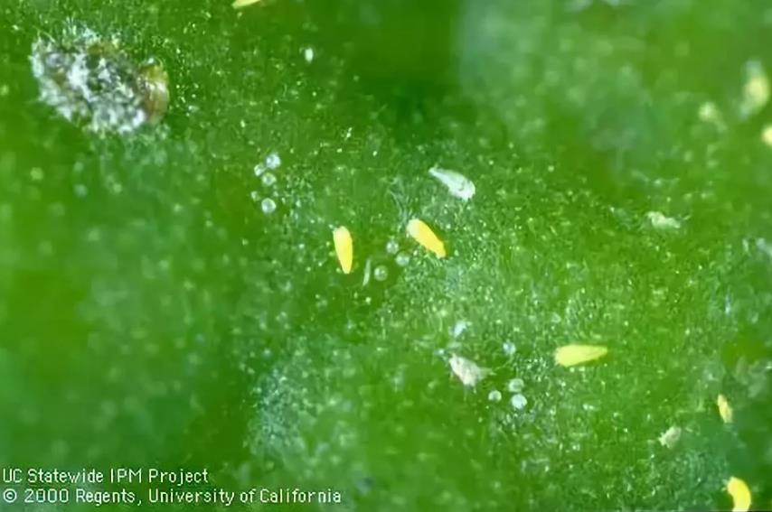 二斑葉螨主要在葉片的背面取食,通過刺穿細胞吸食汁液,初期葉片生失綠小點,葉脈變褐,嚴重時全葉發白、枯焦脫落。