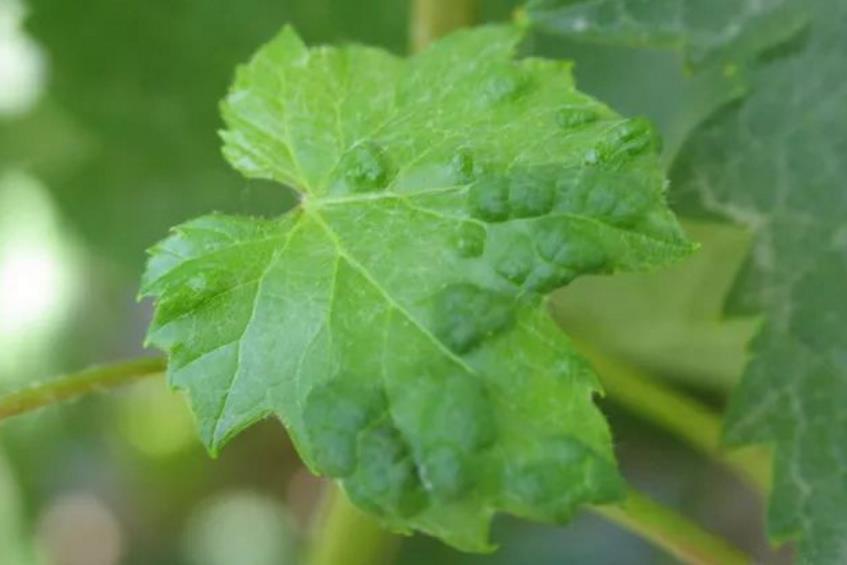 除去葉片外,當葡萄缺節癭螨發生嚴重時,還可為害葡萄芽、嫩梢、幼果、卷須、花梗等,同時它還可傳播灰皮諾葡萄樹病毒。