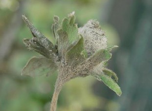 主要癥狀:果實發病初期呈淡褐色油浸狀小斑點,以后加速擴大到全果實。使果軟化并在表面產生白色棉絮狀菌絲,不久菌絲頂端長出灰色粉狀霉,即病菌分生孢子。未成熟果干僵變為干腐。花辯受害變為黃褐色。果柄和葉柄感病產生褐色病斑,花,果,葉枯死。