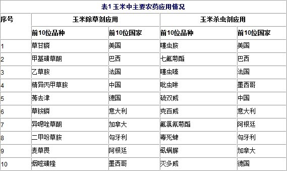 全球玉米農藥應用情況如下所示: