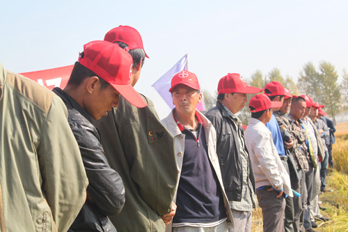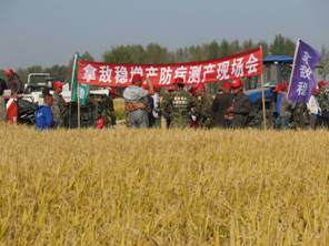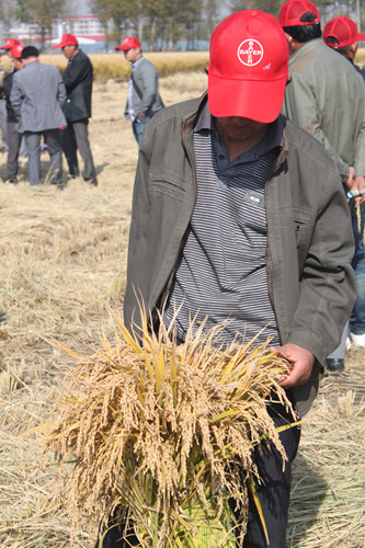 2014年9月,拜耳在黑龍江綏化舉行了拿敵穩增產防病實收測產現場會,省植保站領導、綏化縣植保站領導、拜耳北區經理等,省PD、BKD、金牌BKR、拜耳特約專家和當地種植大戶等百余人參加了測產會。