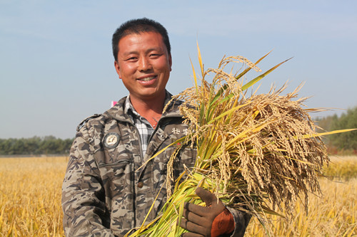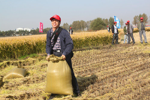 綏化植保站中心主任高度認可測產結果 從現場收割的水稻看,使用拿敵穩后的水稻活稈成熟,稈不空,活葉多1~2葉,由于拿敵穩防病效果好,田間沒有病害發生,每平方米有效穗數增加了30穗,空秕粒少3.2粒,實粒數增加3.2粒,千粒重增加0.3克,因此根據測算平均每畝增產約140斤。測產結果得到當地農戶/拜耳特約專家/BKD/BKR及植保站認可。 膽大包天-- 農戶說:拿敵穩的成本比較高,我背著媳婦買了,開始心里也沒有底,周圍的人還笑我傻。結果等到后期看到效果。我的心放下了!我媳婦也高興了 認可了!明年還得用。把所有的地都噴上! 零售商說:我是第一年跟拜耳合作,剛接觸拿敵穩,我對拿敵穩的效果不是很放心。但是拜耳公司的技術服務非常到位,在店內對農戶進行培訓,地頭手把手教農戶如何用藥,我漸漸的感受到了拜耳公司的魅力,開始信任拿敵穩的未來。最近,我跟著拜耳技術人員走了很多的田塊,一雙新皮鞋走成了鱷魚牌!效果是一家比一家好,我是服了! 最后,在室內開會的時候,最后,工作人員問。明年誰用拿敵穩?臺下全都舉起了手。 豐收的喜悅--測產現場圖集