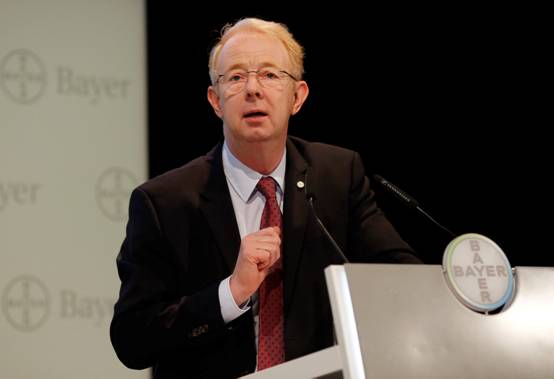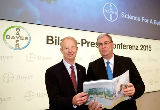 Marijn Dekkers博士與拜耳首席財(cái)務(wù)官Johannes Dietsch共同展示2014年拜耳集團(tuán)年度財(cái)報(bào)