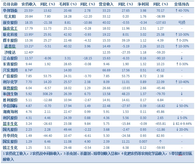 截至目前,已有半數(shù)農(nóng)藥上市公司公布三季度業(yè)績預(yù)告,其中6家企業(yè)預(yù)喜,6家預(yù)減,新安股份預(yù)期虧損,喜憂各半。