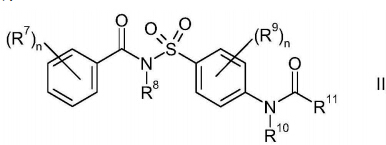 其中,苯并噁嗪酮化合物的化學式如I所示: