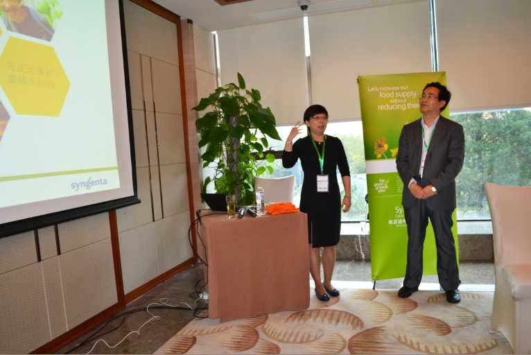 先正達產品安全及項目管理高級項目經理侯以利和先正達政府事務經理張孟玉為大家講解了授粉行動與蜜蜂健康對糧食生產的重要性。據統計,全球30%的糧食生產依靠蜜蜂授粉,產生的經濟價值在1500億美元左右。作為一家專門從事農業的公司,授粉昆蟲和蜜蜂對人類是重要的,對先正達也是重要的,為此,先正達保護蜜蜂在行動,培訓施藥人員看標簽,免費提供手機APP,確保種植者與養蜂人的溝通,施藥時避開蜜蜂等。