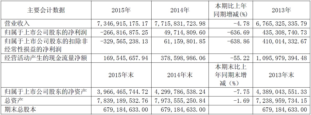 2015年度公司實(shí)現(xiàn)利潤(rùn)總額-1.98億元(合并數(shù)),比上年度的利潤(rùn)7027萬元,減少了2.68億元,下降了383%。其中農(nóng)化產(chǎn)品銷售毛利率本年為8.74%,比上年毛利率13.91%下降了5.17個(gè)百分點(diǎn),毛利減少2.17億元;有機(jī)硅產(chǎn)品銷售毛利率本年為11.67%,比上年毛利率11.36%上升了0.31個(gè)百分點(diǎn),毛利增加1461.56萬元。國(guó)外銷售毛利率本年為5.67%,比上年毛利率14.19%下降了8.52個(gè)百分點(diǎn),農(nóng)藥產(chǎn)品減利是今年利潤(rùn)下降主要原因。