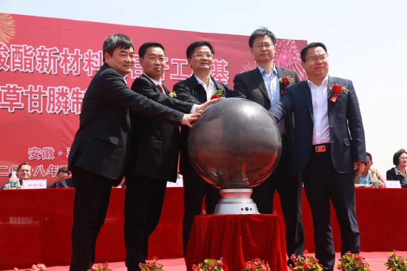 馬鞍山市人民政府副市長李強、中共和縣縣委副書記、和縣人民政府縣長劉斌、中國農(nóng)藥工業(yè)協(xié)會會長孫叔寶、深圳市大生農(nóng)業(yè)集團有限公司董事長蘭華升、安徽華星化工有限公司總經(jīng)理顏澤彬共同開啟投產(chǎn)啟動球,華星化工10萬噸/年草甘膦水劑和1萬噸/年草甘膦顆粒劑綠色智能化制劑加工中心正式投產(chǎn);