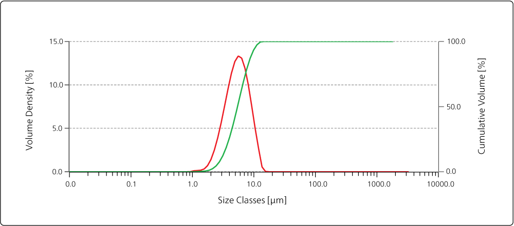 圖2:經CGS流化床氣流磨粉碎后,典型粒徑分布