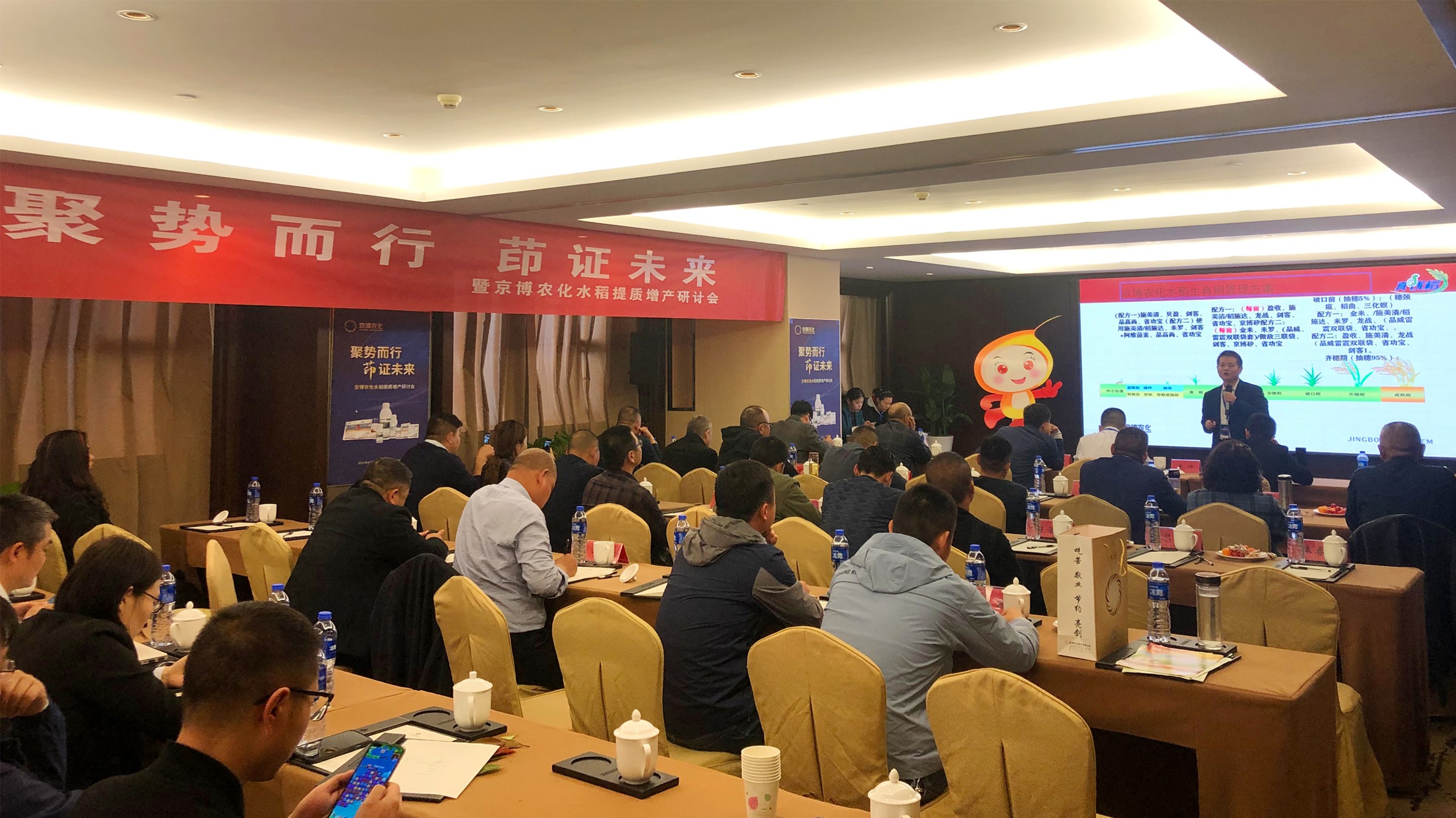 4月12日,京博農化“‘聚勢而行 茚證未來’暨水稻提質增產研討會”在江蘇淮安圓滿召開,40余位江蘇省重點客戶齊聚于此,共同為水稻作物提質增產獻計獻策、共謀水稻市場長期發展,為水稻種植戶穩產增收保駕護航。