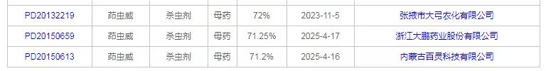 截至目前,國內共有茚蟲威相關原藥登記11個,母藥23個。