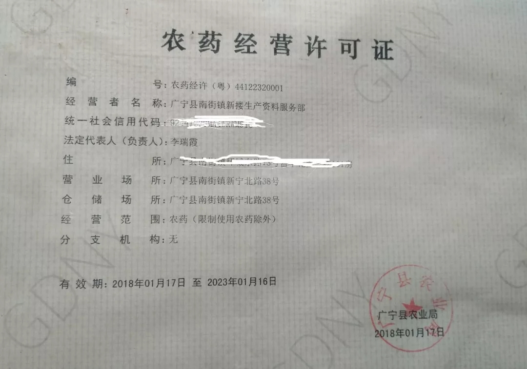 近日,廣東省第一批農藥經營許可證由肇慶市廣寧縣農業局發放。