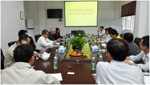 此行專家組由中國農藥工業協會夏烽副秘書長帶隊,農藥制劑加工與分裝專家Peter Southgate先生、戴權高工、齊武高工組成。專家組一行來到了位于廣東東莞的諾普信制劑加工廠,診斷提升活動的第一步,仍然是提綱挈領,抓住要害。以Peter Southgate為首的專家團隊與采購、技術、生產等諾普信各部門相關人員共同探討并給出了需要改善的制劑工程項目的提升目標,并明確了生產中可能影響項目提升的限制因素、提升規劃的時間表以及生產中數據采集的具體要求。在制劑加工及分裝車間管理流程的報告中,Peter根據多年來在跨國公司的管理經驗,給出了一整套科學的管理規范,強調了操作規程書面化、數據采集和標準化工作流程的重要性。
