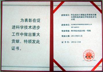 課題研究闡明了我國華北地區(qū)麥田和蔬菜田小麥白粉病菌、麥蚜、黃瓜霜霉病菌、桃蚜、小菜蛾、煙粉虱和播娘蒿等重要病、蟲、草害化學防治中劑量控制對有害生物的時空變化規(guī)律及敏感度差異影響的生物化學和分子機制,首次建立了黃瓜霜霉病菌、麥蚜、棉(瓜)蚜、盲蝽和播娘蒿等耐(抗)藥性早期快速檢測技術。并率先提出了基于敏感度變異的配方選藥和低劑量生物合理性化學防治策略。通過對雜草、麥蚜敏感度變異的檢測及其耐(抗)藥性機制、對后茬作物藥害等的研究,建立了華北地區(qū)麥田雜草、麥蚜低劑量生物合理性化學防除技術模式;綠色農華公司作為唯一一家企業(yè)參與該項研究。項目開展期間綠色農華公司集中自身及下屬單位績溪農華生物科技有限公司、北京達世豐生物科技有限公司的科研力量共成功研制農藥新制劑27種,榮獲國家發(fā)明專利11項,產品均獲得登記并實現(xiàn)了產業(yè)化;本項目共獲得國家發(fā)明專利15項,制定農藥行業(yè)標準和地方標準100余項;病蟲草害生物合理性低劑量化學防治技術在河北、山東、河南、安徽、江蘇、北京、天津、內蒙古、山西等9省(市)大面積推廣應用,產品累計推廣1.15億畝,經濟效益達55.86億元,并取得了顯著地生態(tài)和社會效益。鑒定委員會主任由中科院動物所康樂院士擔任,北京農林科學院植保環(huán)保所研究員張芝利、貴州大學教授宋寶安擔任鑒定委員會副主任。專家組對成果給予了高度評價,認為整體研究水平達到國際先進,其中在麥蚜對殺蟲劑敏感度變異機理和生物合理性減量化學防治技術體系與模式方面達到國際領先水平。該項目榮獲2012年度教育部科技進步一等獎,全國僅4項植保類成果獲授2012年度高等學校科學研究優(yōu)秀成果獎。