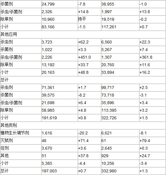 3 其他類別包括植物生長調節劑。滅鼠劑,佐劑和生物農藥;