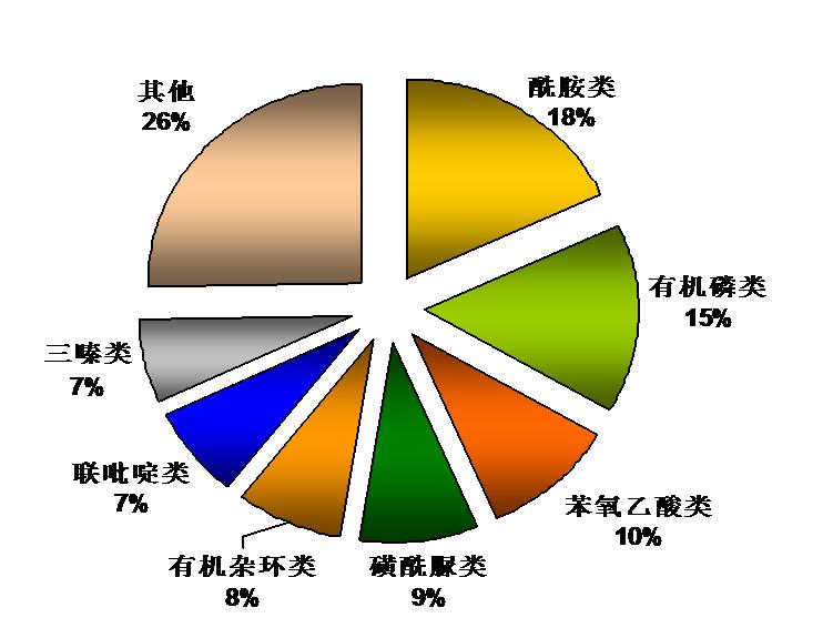 1.國內(nèi)2009年市售除草劑(85億元)主要類別的市場份額