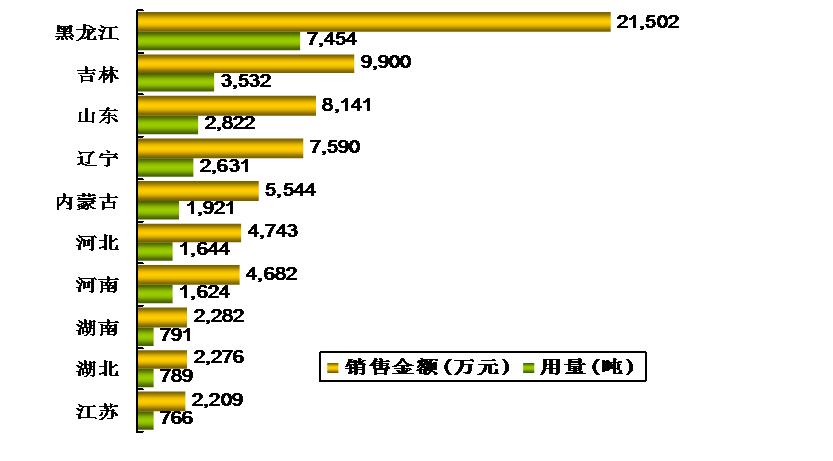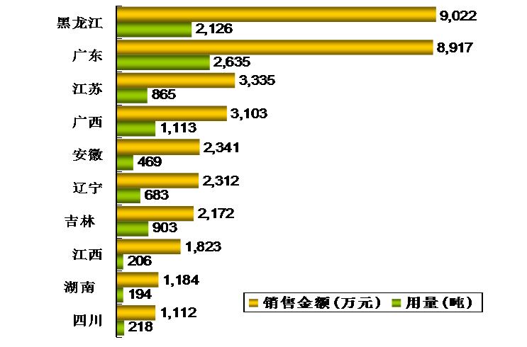 5.丁草胺在主要應(yīng)用作物上的用量及銷售金額