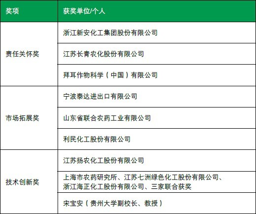10月19日,在第十二屆全國農藥交流會主題大會上,舉行了第五屆中國農藥行業創新貢獻獎頒獎典禮,共有 9 個集體和個人獲獎。
