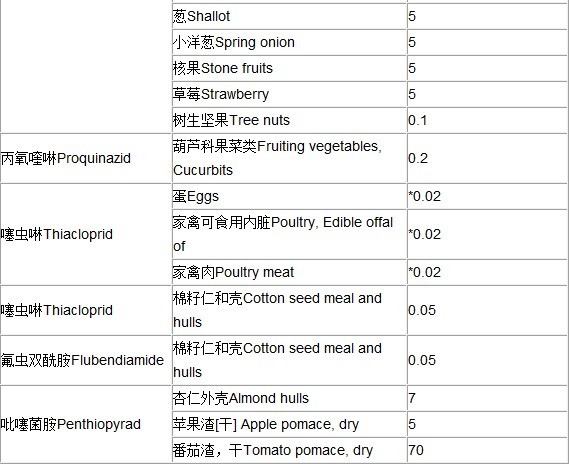 注:* 表示最大殘留限量(MRL)等于或接近于檢測限。