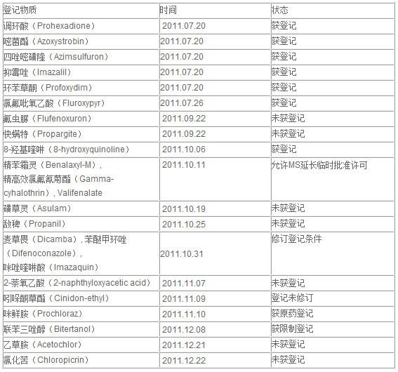 本文對2011年7月份以來歐盟發(fā)布的農(nóng)藥登記決定進行了匯總,包括調(diào)環(huán)酸等八種物質(zhì)獲得登記,見下表。
