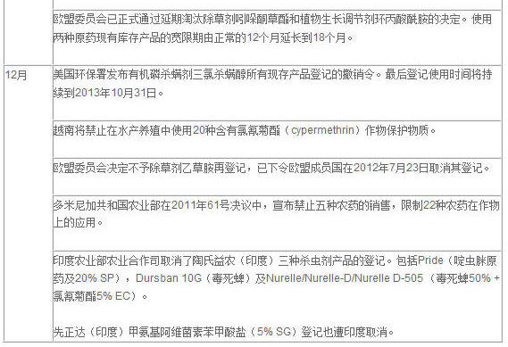 淘汰和禁用永遠(yuǎn)是讓農(nóng)藥商最關(guān)心和無奈的話題, 農(nóng)藥禁用/限用/淘汰/重審大事記以警醒讀者:陳退新至,舊產(chǎn)品的淡出也意味著新品的契機。現(xiàn)將近年專利即將過期的農(nóng)藥產(chǎn)品品種和市場情況逐一簡介給大家: