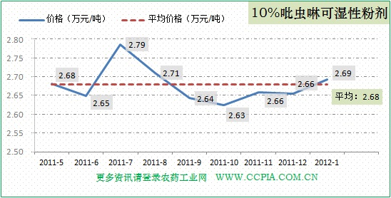 10%吡蟲啉可濕性粉劑近期價格相對浮動較小,1月份有小幅回暖,但基本維持在平均價格上下。具體價格走勢如下圖。