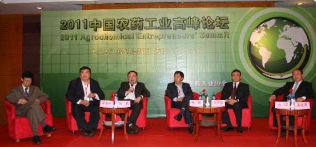 由上海生農生化制品有限公司董事長畢強主持,邀請到:江蘇輝豐農化股份有限公司董事長仲漢根,寧波泰達進出口有限公司董事長楊征宇,青島海利爾藥業有限公司總裁楊波濤,杭州宇龍化工有限公司董事長吳華龍,四川省樂山市福華通達農藥科技有限公司董事長張華。他們都是企業的掌舵人,在更多企業發展過程中的戰略和政策有著各自獨到的見解。