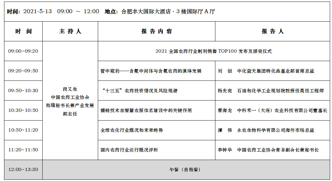 為了更好地引導企業了解農藥工業經濟形勢和行業運行態勢,提升自身創新能力和競爭力,加速產業結構調整步伐,增強企業應對突發事件能力,同時有效推動行業健康可持續發展,中國農藥工業協會將于2021年5月11-13日在安徽省合肥市召開第八屆農藥行業經濟運行分析會暨農藥行業排行榜發布會。