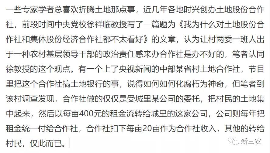 如果僅僅是為了流轉一下土地,有必要成立一個“土地股份合作社”嗎?村委會是干什么的?這種把簡單的事情復雜化,為迎合政策導向,謀取虛浮政績,無謂增加組織成本,顯然背離了帕累托最優原則。套用一句去年網絡最流行的熱詞之一--“內卷化”,全國投入大量的各類資源,去創建類似這種大量的低效、無效甚至負效的各種合作社,難道不是一種“內卷化”現象嗎?其實,江西省早在十多年前就有很多村委會或村民小組,把村民的土地集中起來統一發包,并沒有什么障礙。現在一些地方熱衷于搞土地流轉,其實已經變味了,就是為流轉而流轉、為引進工商資本而流轉、為壘大場面壯觀好看而流轉……