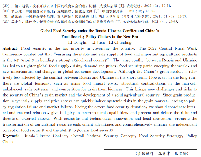 俄烏沖突下全球糧食安全與新時期中國糧食安全政策選擇
