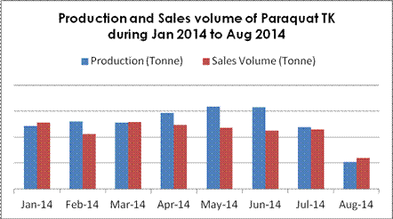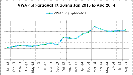 According to CCPIA Monthly Bulletin of Statistics of China Pesticides, in Aug, VWAP of paraquat TK increased by $283 per tonne than that of Jul, till now paraquat price has been increasing for three months in a row, although the growths are not obvious.
