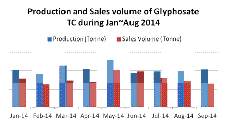 Seem from production and sales, in September, with two more manufacturers operating, output of glyphosate increased by 4.6% MoM, while sales volume declined by 8.8%. The expected increasing exports didn’t appear. According to CCPIA, the annual event, AgroChemEx will be held in Shanghai, China in October. Such event will bring up the order quantity and is estimated to be a turning point of the market.