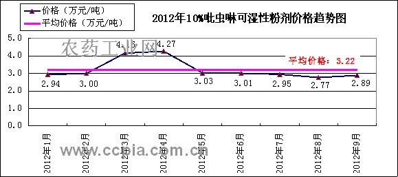 以下為10%吡蟲啉可濕性粉劑2012年1-9月價格走勢圖: