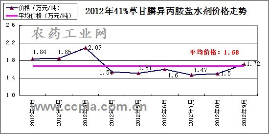 以下為41%草甘膦異丙胺鹽水劑2012年1-9月價格走勢圖: