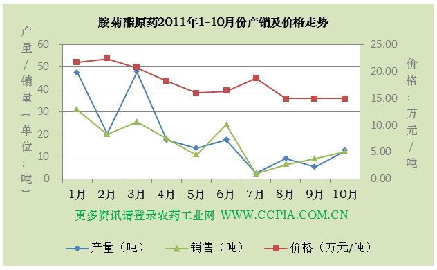 【生產】十月份,胺菊酯原藥依然開工正常,中山凱中和江蘇揚農的產量都增加,10月份共生產12.39噸,1-10月份共計生產192.98噸。