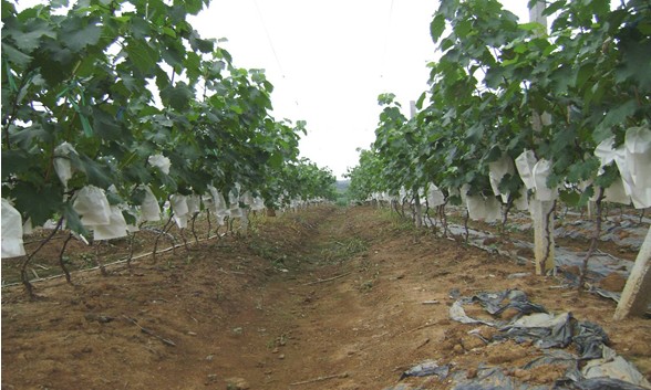 (圖二:實(shí)驗(yàn)示范區(qū)葡萄90—100天內(nèi)掛果明顯增多)