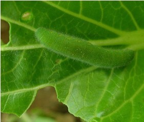 為害特點:菜青蟲初齡期在葉背啃食葉肉,殘留表皮,呈小形凹斑,3齡后吃葉成孔洞或缺刻。嚴重時,只殘留葉脈和葉柄。同時排出大量糞便,污染菜葉和菜心,使蔬菜品質變劣;并且蟲傷又為軟腐病菌提供了入侵途徑,導致菜株發生軟腐病,加速全株死亡。