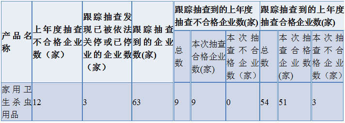 從圖中可以看出,本次抽查對上年度12家不合格企業(yè)進行了跟蹤,除3家被關(guān)停或停業(yè)外,其余9家經(jīng)跟蹤抽查合格。同時對上年度54家合格企業(yè)進行了跟蹤,有51家經(jīng)跟蹤抽查合格。這也說明了連續(xù)的產(chǎn)品質(zhì)量國家監(jiān)督抽查有效促進了企業(yè)產(chǎn)品質(zhì)量的提高。